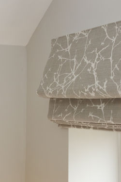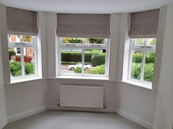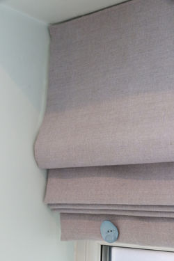 ![]() Small scale James Hare weave gives subtle interest on the Roman Blinds in this bedroom bay window in Wilmslow. | ![]() This luxurious Interlined and blackout lined Roman Blind is fitted outside the window reveal for this arched window and the upholstered pelmet reflects the feature arch behind | ![]() Borders can be added as a extra detail on roman blinds, either a simple border to the lower edge or on two, three or four sides to frame the blind. |