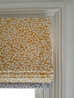 ![]() | ![]() Kitchen roman blind with upholstered pelmet in striking Romo fabric. | ![]() Landing Roman Blind in Romo chartreuse fabric. |